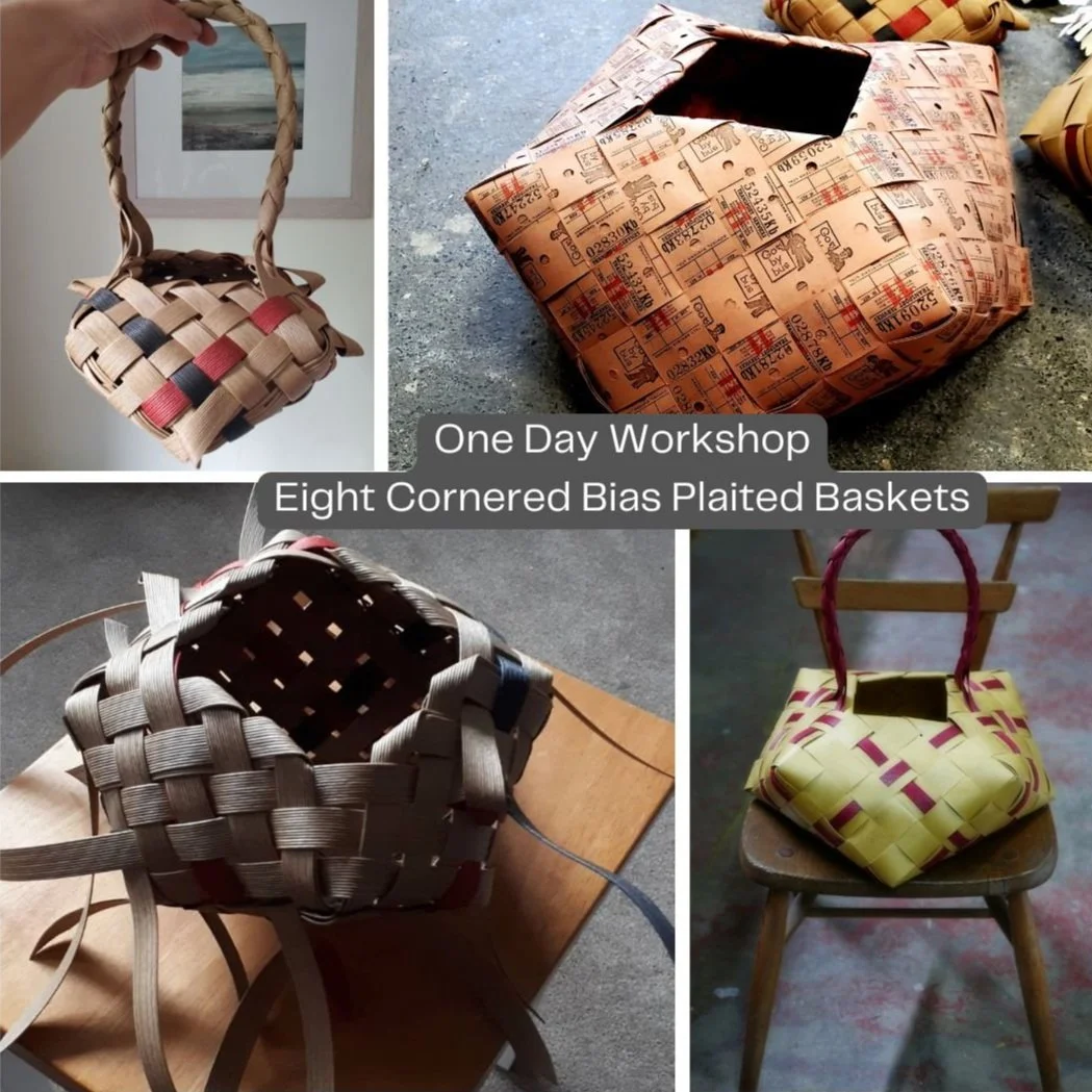 Bias plaited baskets can be woven with many types of flat materials. The 8 Cornered Bias Plaited basket is fascinating to make and readily adaptable to many variations! On the course, you’ll: